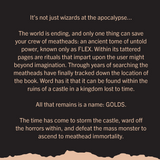 The world is ending, and only one thing can save your crew of meatheads: an ancient tome of untold power, known only as FLEX. Word has it that it can be found in the ruins of a castle in a kingdom lost to time.